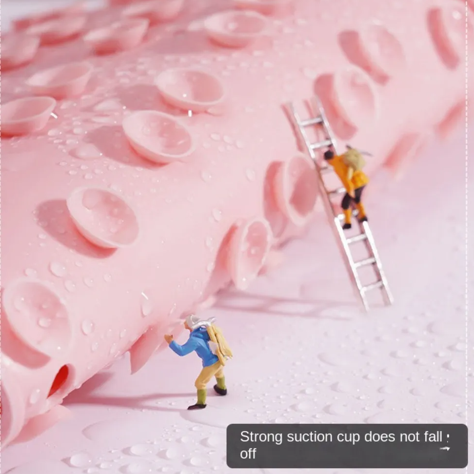 Esta almohadilla de masaje de espalda de silicona cuenta con un diseño de ventosa antideslizante que puede adherirse firmemente a las paredes o pisos del baño, lo que garantiza la estabilidad y la seguridad durante su uso.