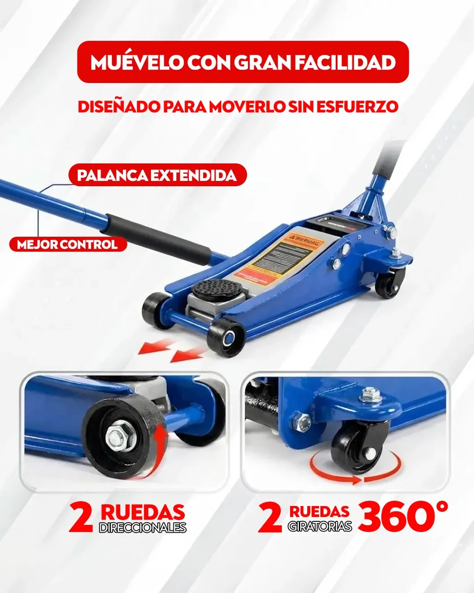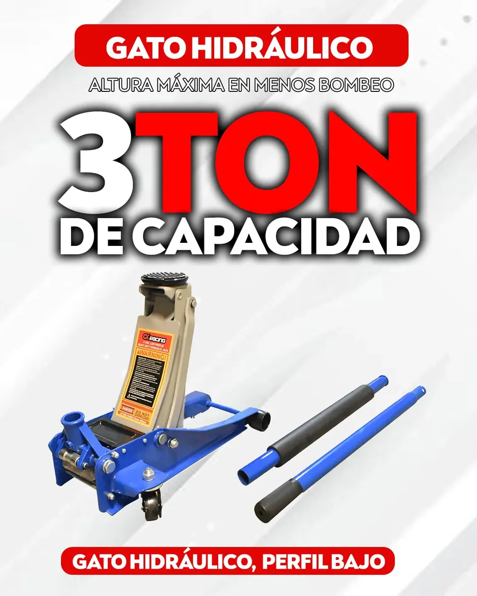 El Gato Hidráulico Patín Extra Bajo 3 Toneladas es una herramienta indispensable para cualquier taller mecánico o entusiasta del automóvil. Con una longitud de palanca de 110 cm, este gato ofrece una máxima altura levantada de 50 cm y una mínima altura levantada de 7.5 cm, con doble pistón de elevación, lo que lo hace ideal para vehículos con poca distancia al suelo. Con una capacidad de carga de hasta 3 toneladas, este gato hidráulico es robusto y confiable, garantizando un levantamiento seguro y estable. Su formato hidráulico facilita su uso y permite levantar el vehículo de manera rápida y sencilla, ahorrando tiempo y esfuerzo en cualquier tarea de mantenimiento o reparación. Ya sea para cambiar neumáticos, realizar trabajos de frenos o cualquier otra tarea debajo del vehículo, este gato hidráulico patin extra bajo es la herramienta perfecta para elevar tu automóvil de forma segura y eficiente.