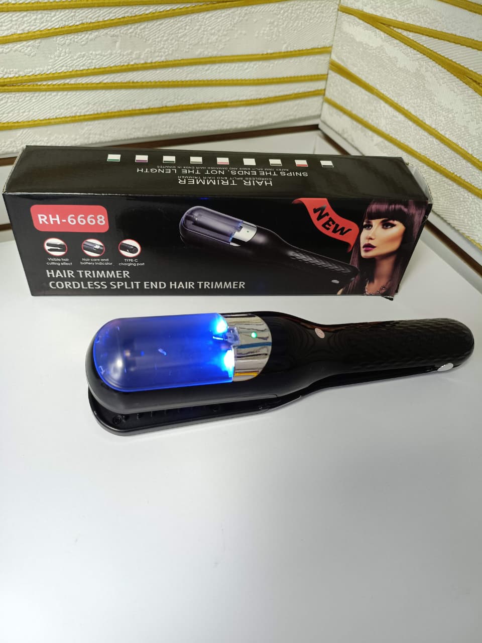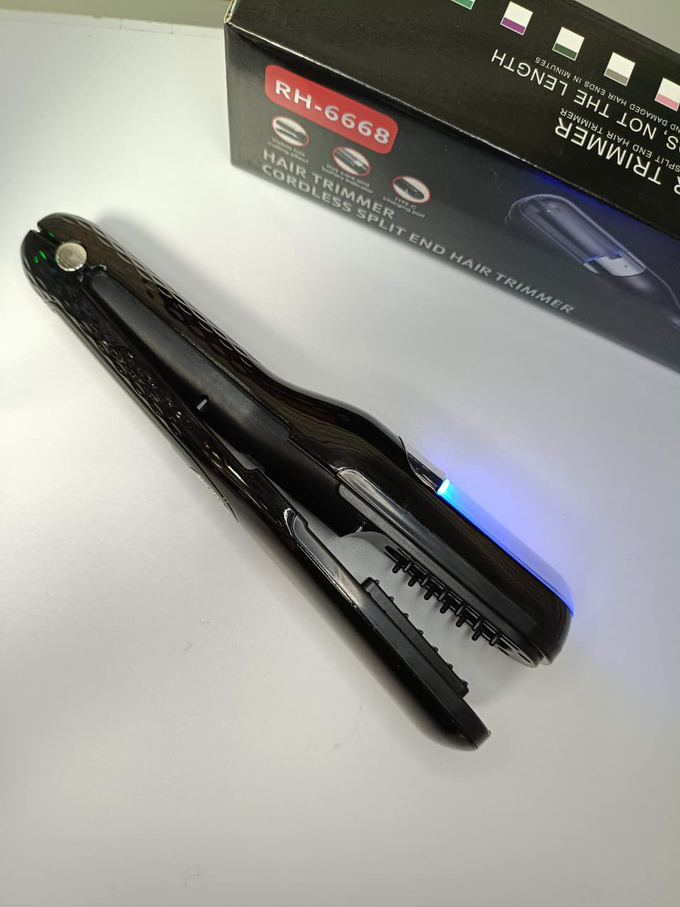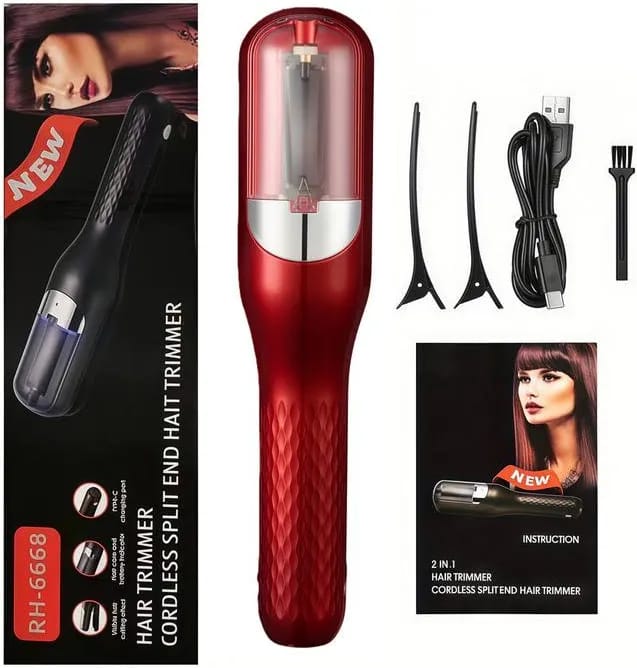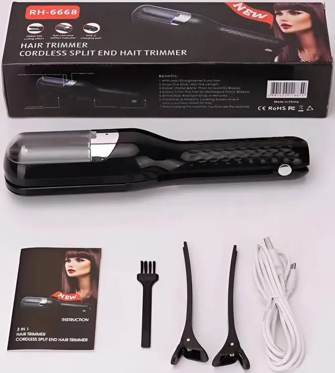 La máquina quita orzuela de cabello es ideal para profesionales y uso en el hogar. Elimina las puntas abiertas de manera fácil. Recargable con sección para visualizar las puntas. Batería de larga duración. Material ABS resistente. Incluye puerto de carga USB tipo C. Protección del cabello e indicador de batería.