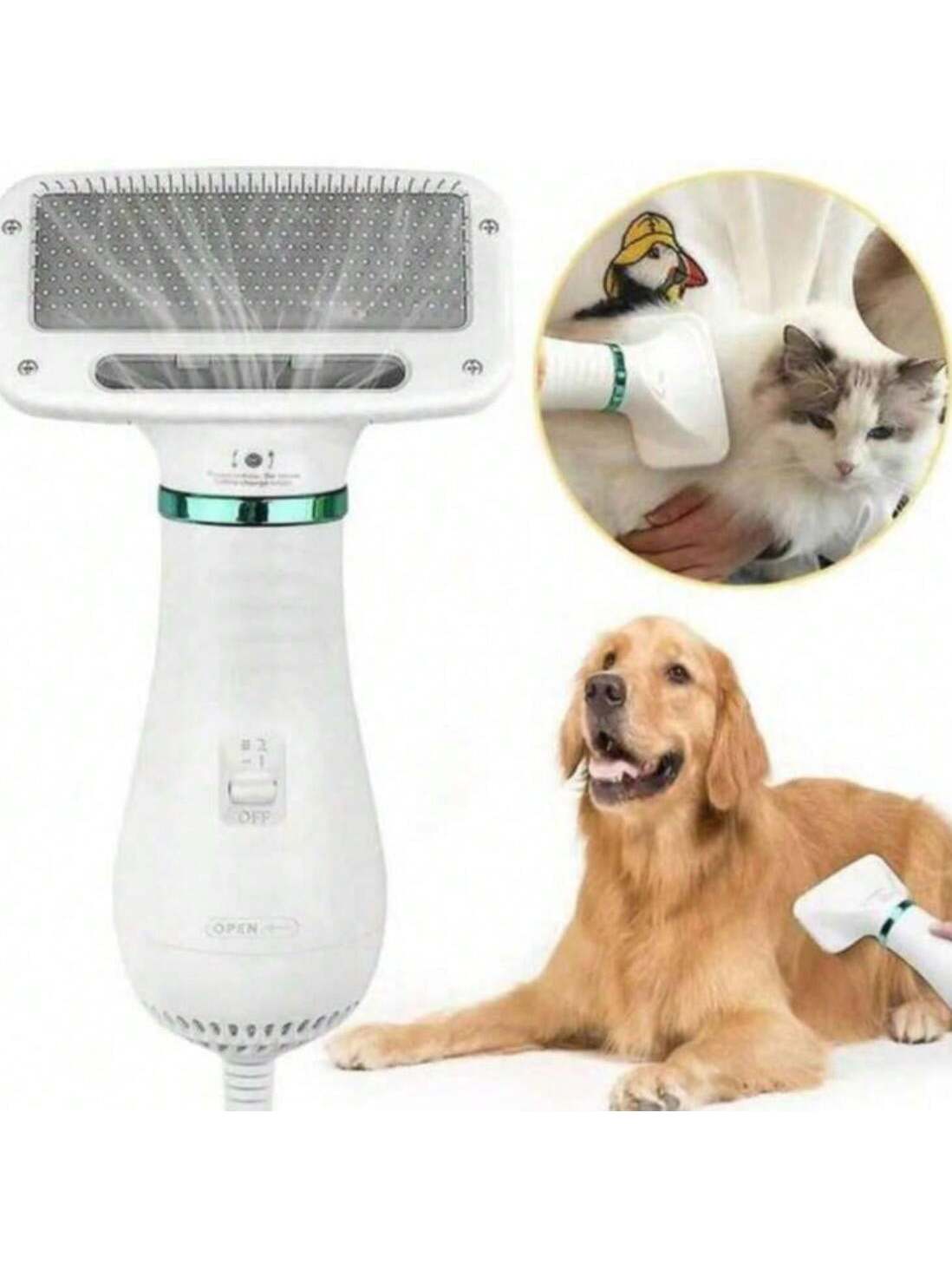 Cepillo seguro y cómodo: El cepillo suave del secador de pelo para perros está hecho de agujas suaves de acero inoxidable y la aguja en el peine adopta un diseño de cabeza redonda y segura, que no raya la piel de la mascota y tiene un gran efecto de masaje